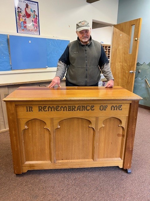Saint James, Sedro-Woolley lost the use of their sanctuary in 2016 because of structural problems. That building was torn down but the altars – one from the main sanctuary and one from the children’s chapel were saved along with the church bell and all the stained-glass windows. Their stained-glass windows now grace the memorial garden at Saint Columba’s, Kent, but the two altars and the church bell have been in storage, awaiting a new home.