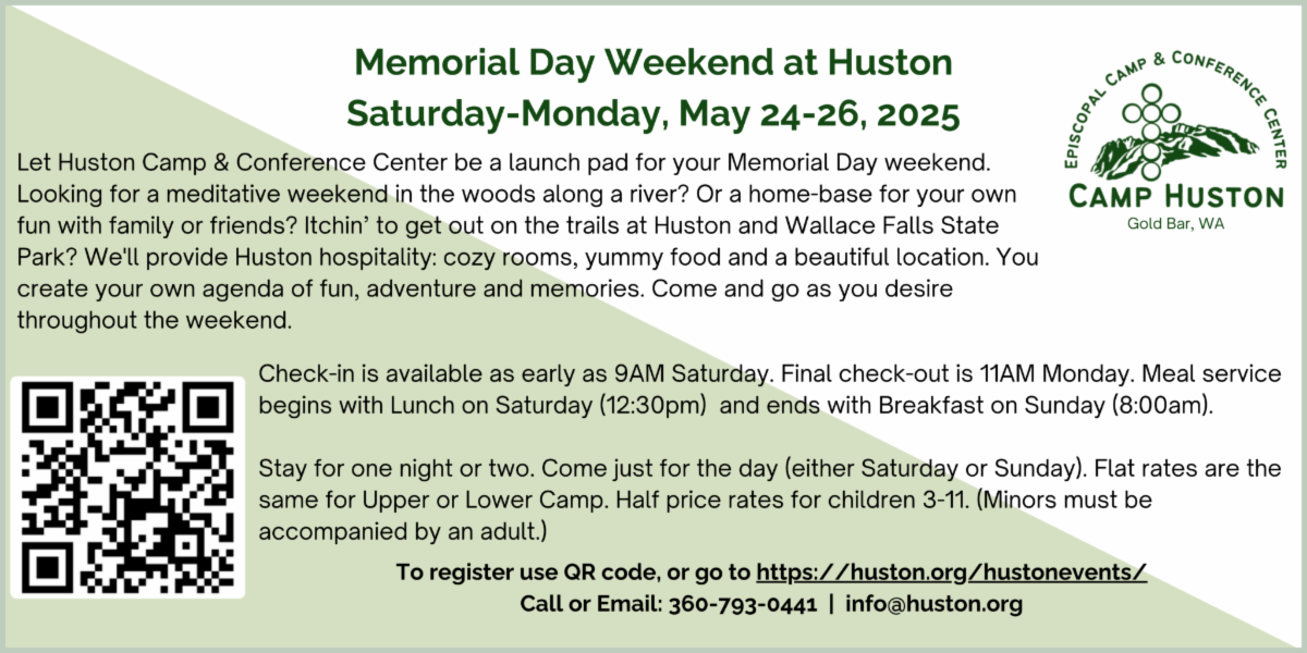 A Memorial Day weekend get-away at Huston Camp & Conference Center for individuals, families, friends.