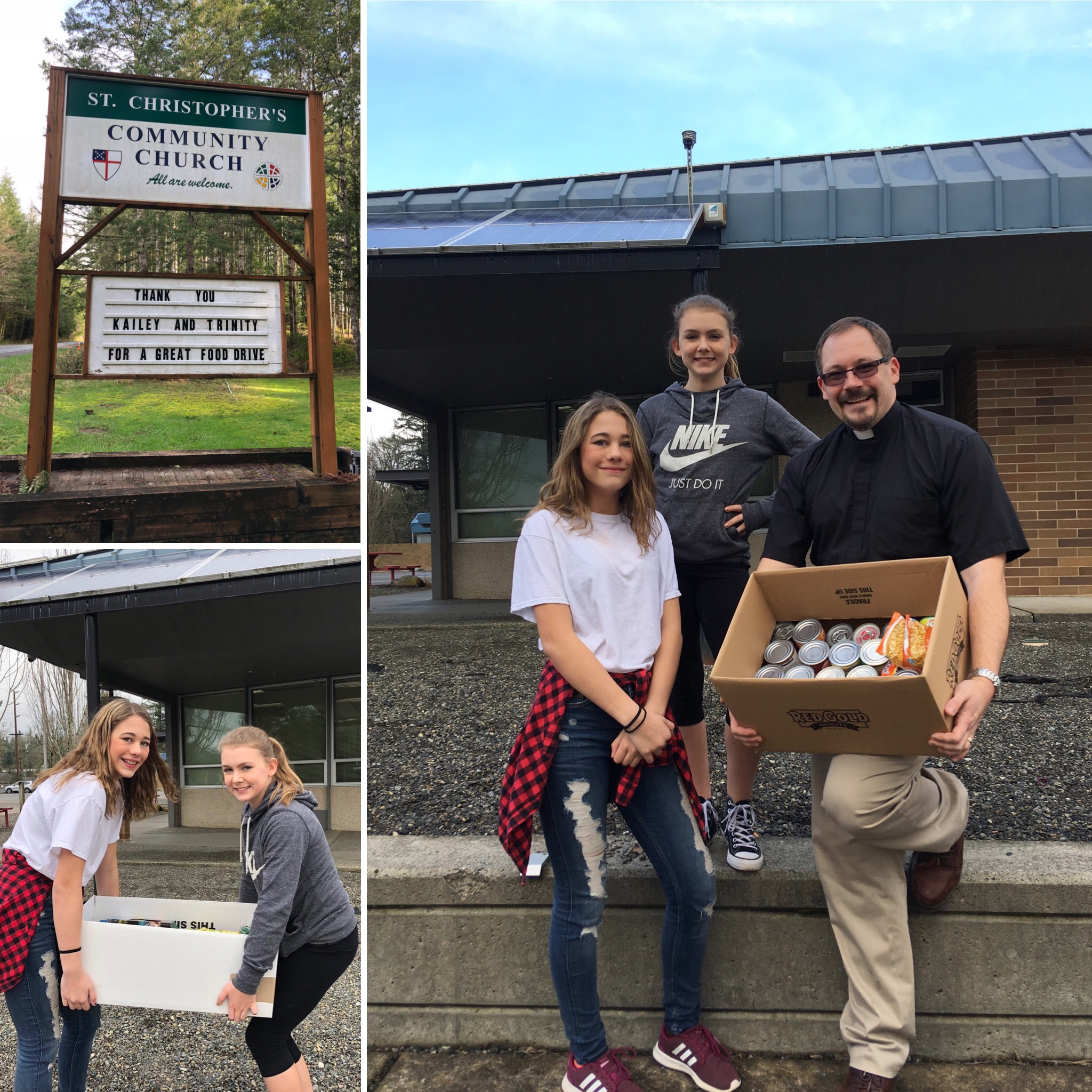 Two Griffin 7th graders, Kailey Clark and Trinity Byrd, lead Griffin students and families in a food drive for our local Thurston County Foodbank hosted at St. Christopher’s. Trinity and Kailey’s leadership resulted in over 15 boxes of food for local families and households in the Steamboat area.